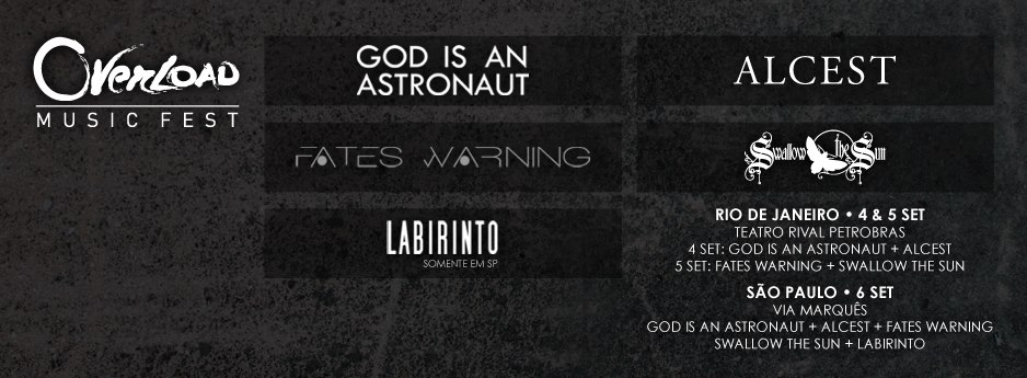 Bandas: God is an Astronaut, Alcest, Fates Warning e Swallow the Sun