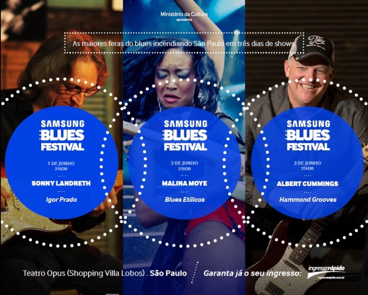 Serão três dias de shows no Shopping Villa Lobos, que contarão com nomes como Sonny Landreth, Malina Moye, Hammond Grooves e Albert Cummings.