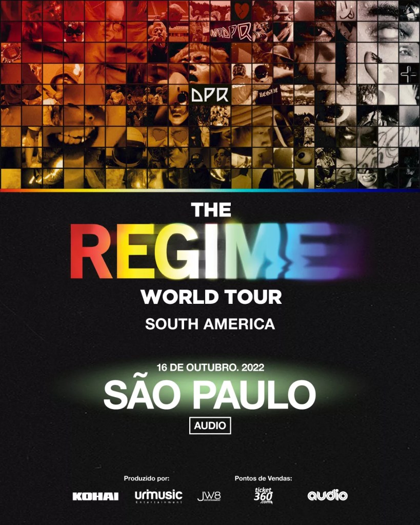 Sob a organização da Urimusic Entertainment, o DPR anuncia a passagem da The Regime World Tour pela América Latina. O trio chega ao Brasil em 16 de outubro para show inédito em São Paulo, na AUDIO.
