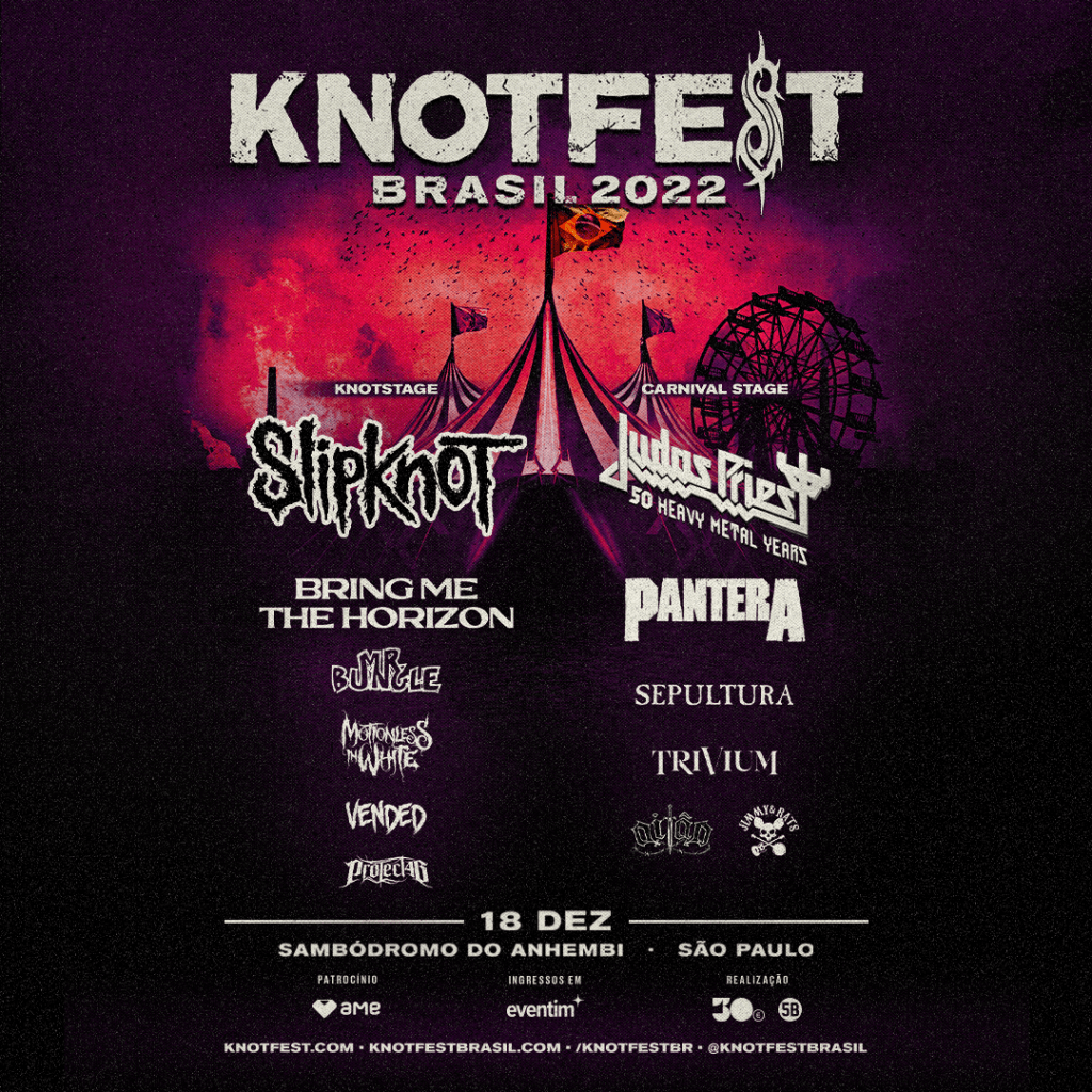 O maior festival hard rock e metal no mundo, que celebra um estilo de vida e a cultura do rock e do metal, o KNOTFEST chega ao Brasil pela primeira vez e já está com seu lineup completo! Além do headliner do festival, SLIPKNOT, onze outras bandas estão confirmadas para se apresentar no Sambódromo do Anhembi, em 18 de dezembro.