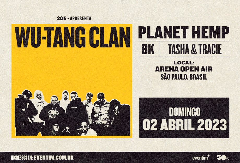 O grupo de Hip-Hop Wu-Tang Clan vai se apresentar em São Paulo, no dia 02 de abril com convidados mais do que especiais: Planet Hemp, BK e Tasha & Tracie.