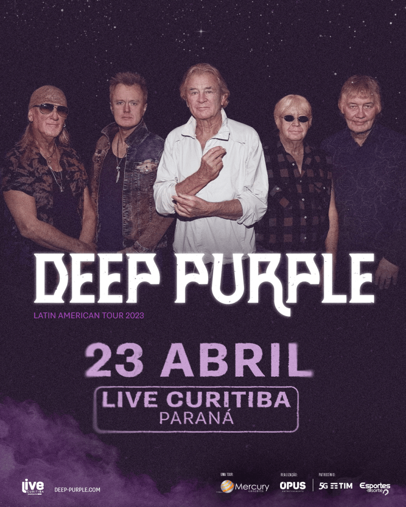 A banda inglesa se apresentará no dia 23 de abril, na Live Curitiba. As lendas Ian Gillan (vocal), Roger Glover (baixo), Ian Paice (bateria), Don Airey (teclado) e Simon McBride (guitarra) prometem mostrar que estão longe da aposentadoria e executar irretocável performance na capital paranaense.