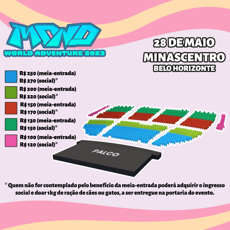 Confira as regras de meia-entrada em: https://bileto.sympla.com.br/meia-entrada/belo-horizonte.html