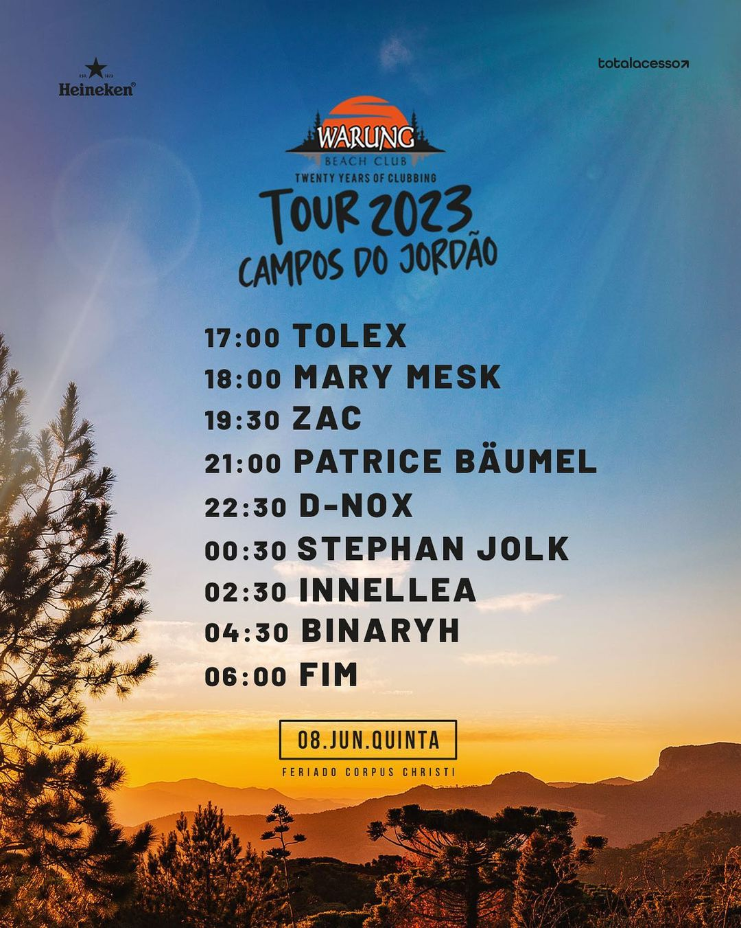Ingressos: sujeito à disponibilidade pelo site da Total Acesso (https://www.totalacesso.com/events/warungtourcamposdojordao2023)