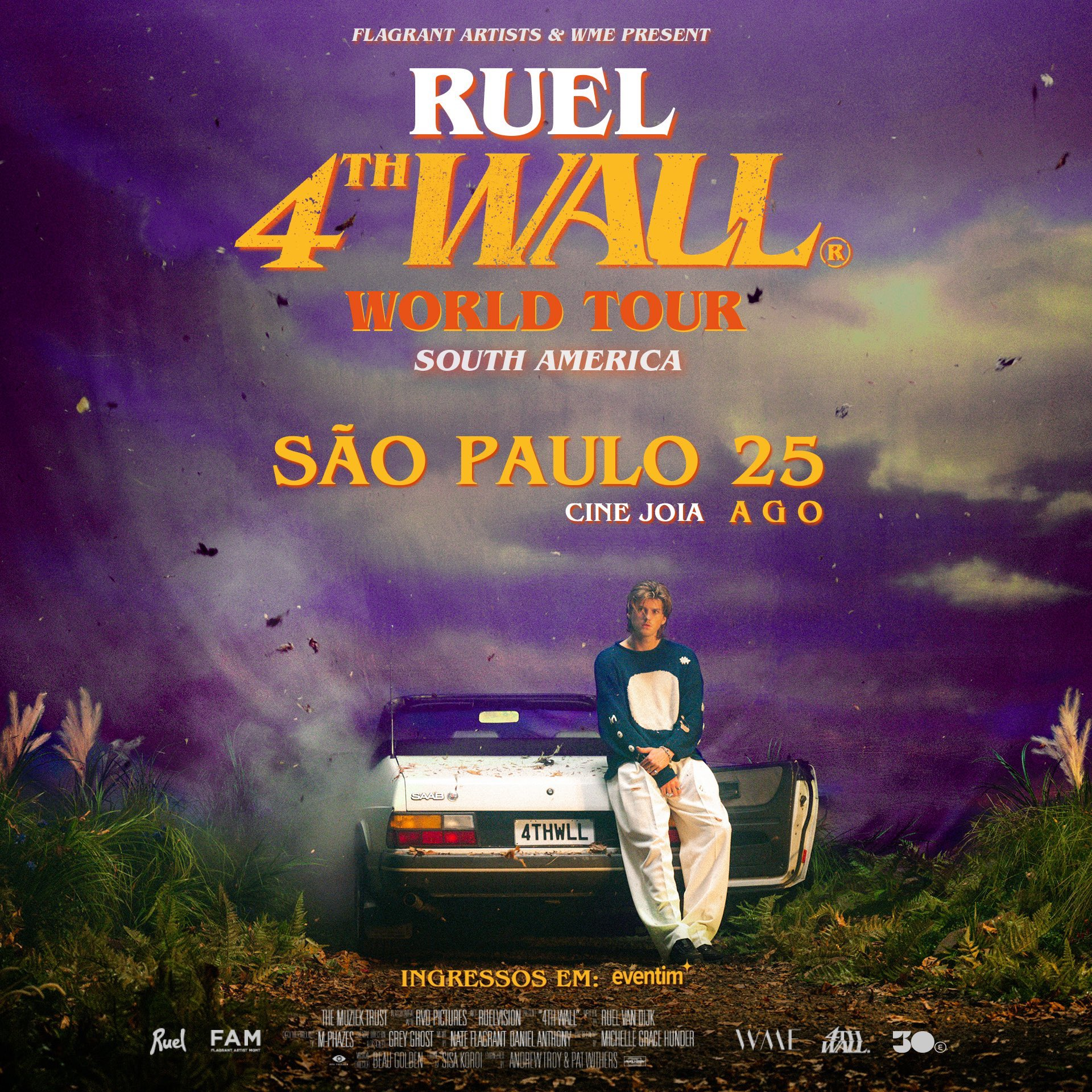 O cantor e compositor RUEL, nascido no Reino Unido e radicado na Austrália, tem uma longa lista de feitos para um artista de 20 anos. Ele já fez turnês globais, lançou três EPs, ganhou um ARIA Awards e conquistou uma fan base sólida ao redor do mundo. Em 2023, o popstar lançou o seu primeiro álbum de estúdio, 4TH WALL, e, agora, confirma a sua primeira passagem pelo Brasil para apresentar o repertório deste trabalho. Realizado pela 30e, o show acontece no dia 25 de agosto, no Cine Joia, em São Paulo. Os ingressos começam a ser vendidos no dia 23 de junho, sexta-feira, na bilheteria oficial do evento e em até 10x no site da Eventim.