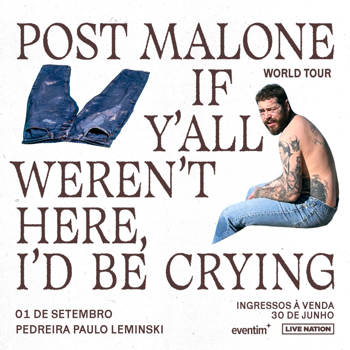 Hoje, a superestrela global Post Malone, indicada ao GRAMMY® e 8x diamante certificado, anunciou a extensão da turnê If Y’all Weren’t Here, I’d Be Crying para o Chile, Brasil, México, Tailândia, Filipinas, Taiwan, Coreia do Sul, China, Japão, Austrália e Nova Zelândia. Após sua jornada de grande sucesso nos EUA e Canadá no ano passado e na Europa este ano para sua tão esperada ‘Twelve Carat Tour‘, a turnê ‘If Y’all Weren’t Here, I’d Be Crying‘ começa em julho com 26 shows na América do Norte. A turnê de 2023 dará aos fãs sua performance emocionante com músicas de seu próximo álbum, assim como os hits favoritos dos fãs em um show completamente reimaginado.