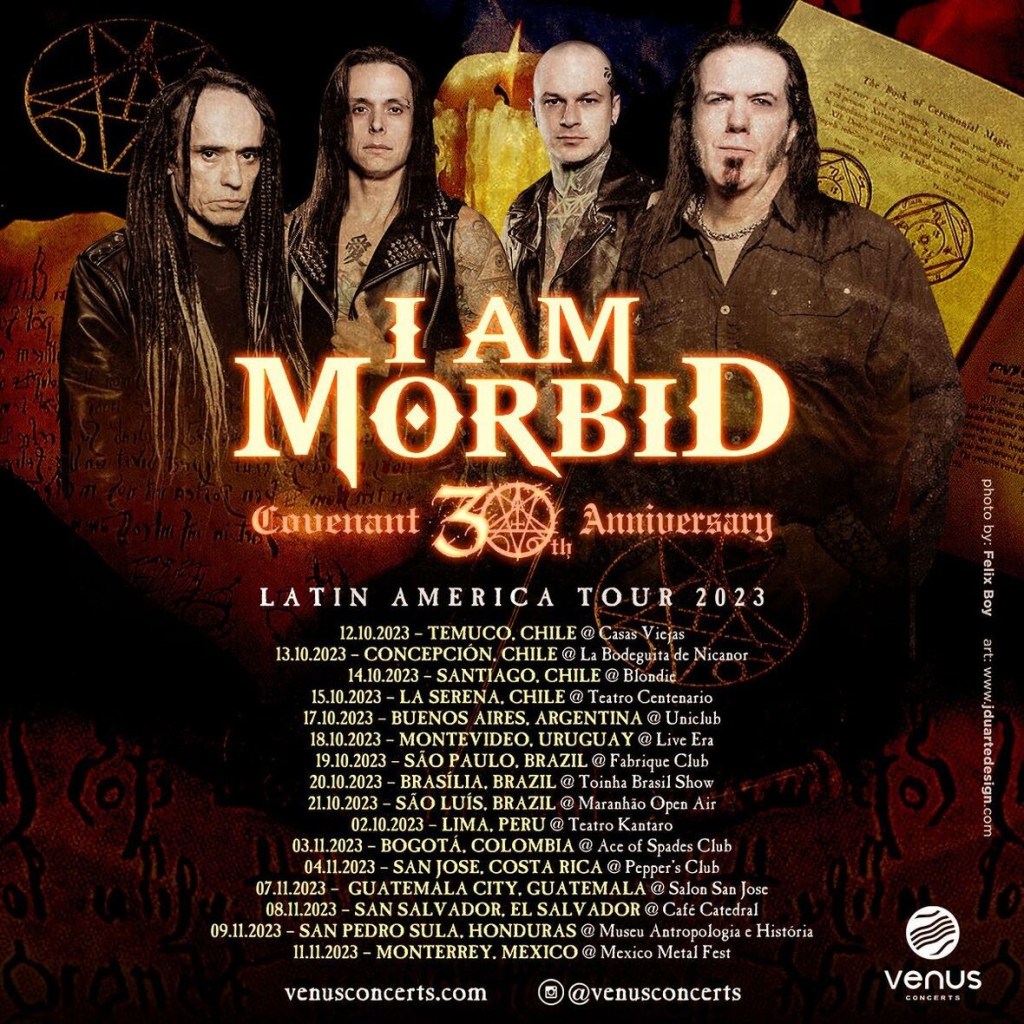 As apresentações do I Am Mobid no Brasil em 2023 trarão o citado álbum Covenant na íntegra e outros clássicos do Morbid Angel. Covenant foi lançado em junho de 1993 pela Earache Records na Europa, pela Giant Records na América do Norte e, posteriormente, ganhou mais versões ao redor do mundo.