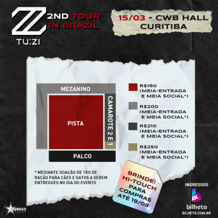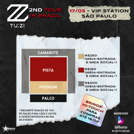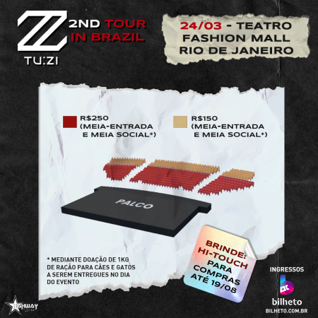 Dá direito a um toque de mãos com os cinco integrantes do 2Z, após o show. Todos os participantes que comprarem ingressos para os shows até o dia 19/08 ganharão um ingresso para o “Hi-touch” gratuitamente.