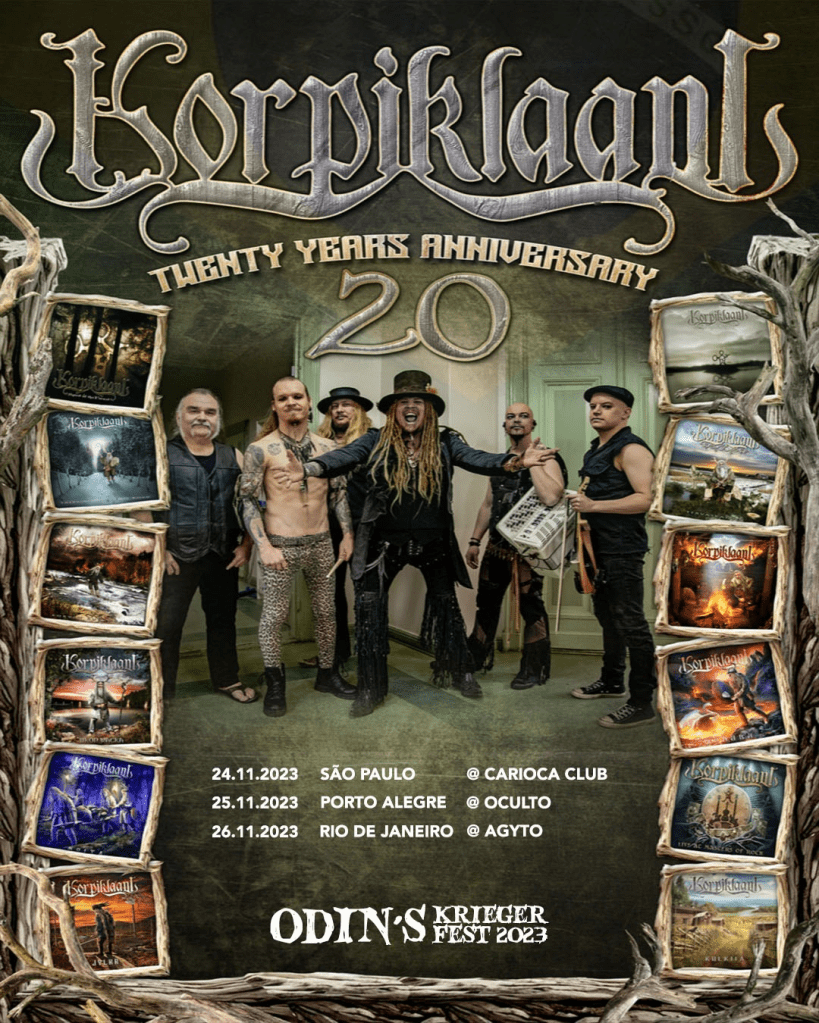 O Odin’s Krieger Fest 2023 com Korpiklaani começam na capital paulista, dia 24/11, no Carioca Club, e segue dia 25/11 para Porto Alegre, no OCulto. A última parada é Rio de Janeiro, no Agyto.