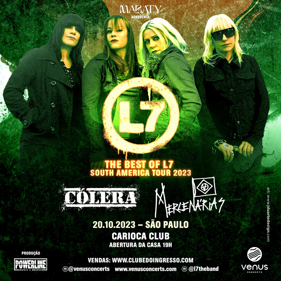 A nova turnê do L7 pela América do Sul, que abrange mais datas no Brasil e em outros países, é uma realização da Vênus Concerts.