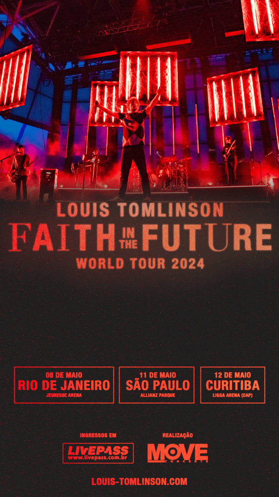 O astro mundial Louis Tomlinson está de volta ao Brasil com sua mais recente turnê “FAITH IN THE FUTURE WORLD TOUR”. O cantor britânico, ex-membro da icônica banda One Direction, se apresentará no Rio de Janeiro em 8 de maio de 2024, na Jeunesse Arena, em São Paulo no dia 11 de maio de 2024, no Allianz Parque, e em Curitiba no dia 12 de maio de 2024, na LIGGA Arena (CAP), para apresentar ao vivo seu mais recente álbum de sucesso, FAITH IN THE FUTURE, ao público brasileiro.
