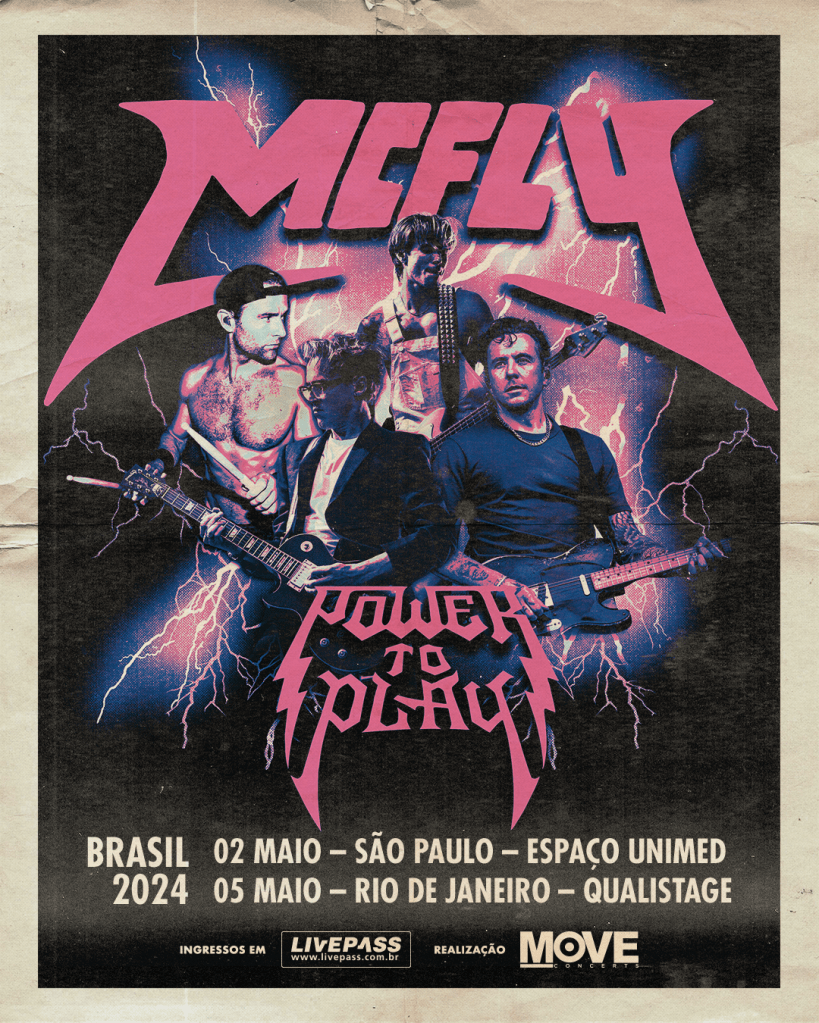 As apresentações do McFly no Brasil são mais uma realização da MOVE Concerts e ingressos estarão disponíveis a partir de 17 de novembro em livepass.com.br.