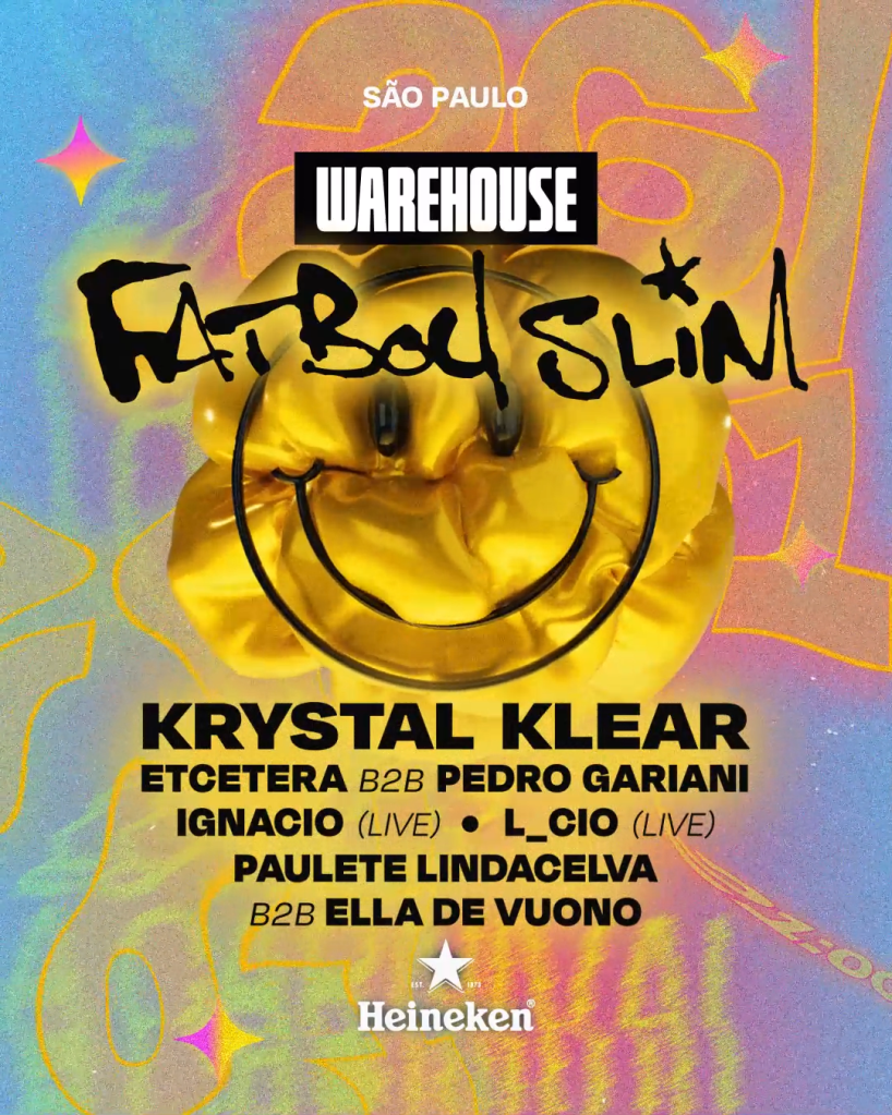 Marcada para 26 de janeiro, a Warehouse promete uma edição histórica em um dos pontos turísticos da capital paulista no pré-carnaval, colocando no mesmo palco artistas consagrados da house music e talentos expoentes atuais. O line-up conta com nomes nacionais e internacionais, como o ícone inglês Fatboy Slim em seu retorno ao país após dez anos de hiato, e Krystal Klear pela primeira vez no Brasil, um exímio DJ e produtor irlandês que sabe como ninguém mesclar seu conhecimento musical profundo com a habilidade em estúdio e a sensibilidade nos decks.