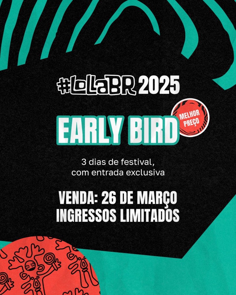 Evento acontecerá nos dias 28, 29 e 30 de março de 2025 no Autódromo de Interlagos, em São Paulo. Venda antecipada de ingressos Lolla Pass acontece a partir de terça-feira, dia 26.