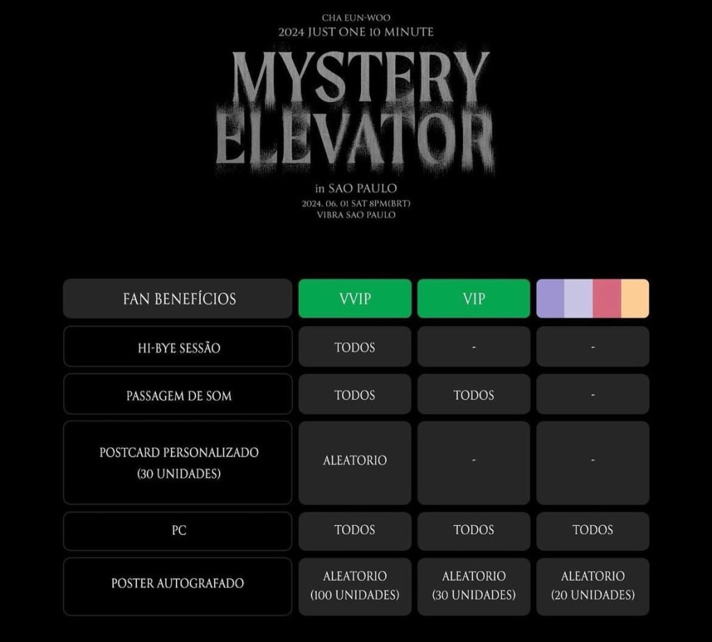 Cha Eun-woo está vindo para São Paulo com show muito especial! O “2024 Just One 10 Minute [Mystery Elevator]” vai acontecer no dia 01 de junho, no Vibra.