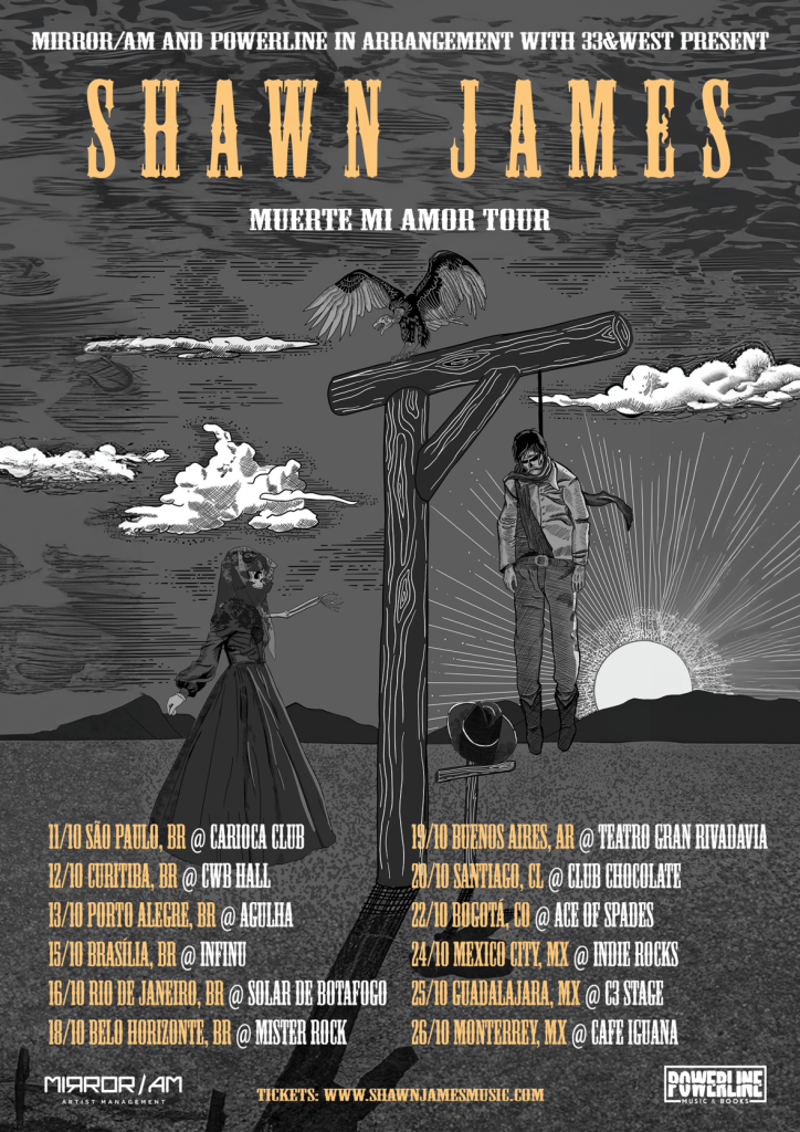 Após a bem-sucedida turnê de 2023 pelo Brasil, com dois sold outs, o músico norte-americano de folk blues rock Shawn James retorna à América Latina em outubro deste ano para uma extensa turnê de 12 datas, sendo seis no território nacional. O giro, chamado Muerte Mi Amor, em referência a uma das mais aclamadas músicas do seu álbum mais recente Honor & Vengeance, é uma realização da Powerline Music Books e da Mirror /AM.