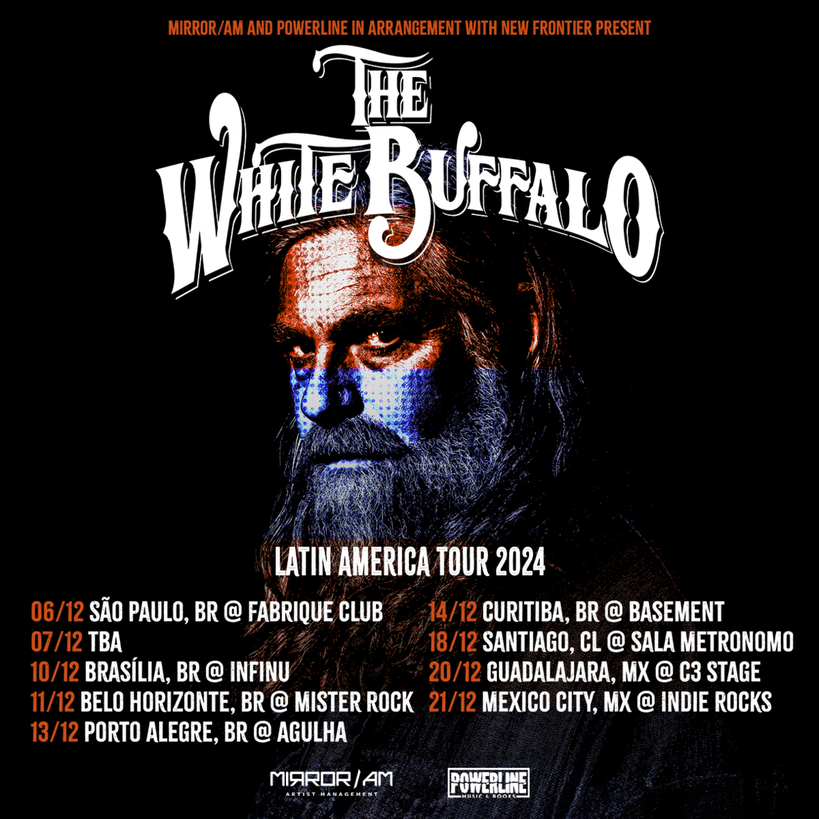 A inédita vinda do The White Buffalo ao Brasil, de 6/12 a 14/12, faz parte da extensa turnê Latino Americana, que é uma realização da Powerline Music Books e da Mirror /AM em parceria com a New Frontier.