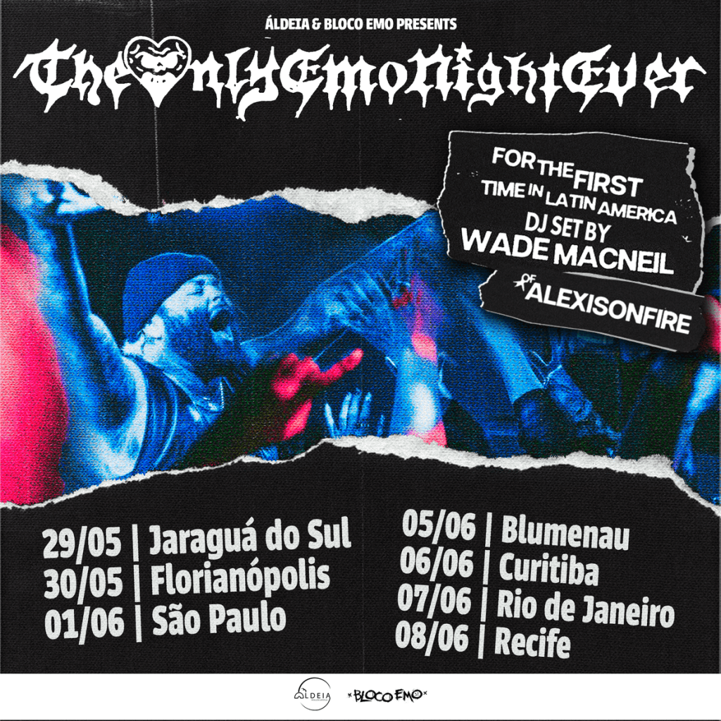 Guitarrista e principal backing vocal do Alexisonfire, uma das mais cultuadas bandas de post-hardcore da atualidade, o canadense Wade MacNeil traz pela primeira à América Latina o The Only Emo Night Ever, evento em que o músico discoteca um extenso set com muitos hinos emos e do pop punk de diversas eras. A perna brasileira da turnê começa dia 29/05 e segue até 8/06, passando por sete cidades.