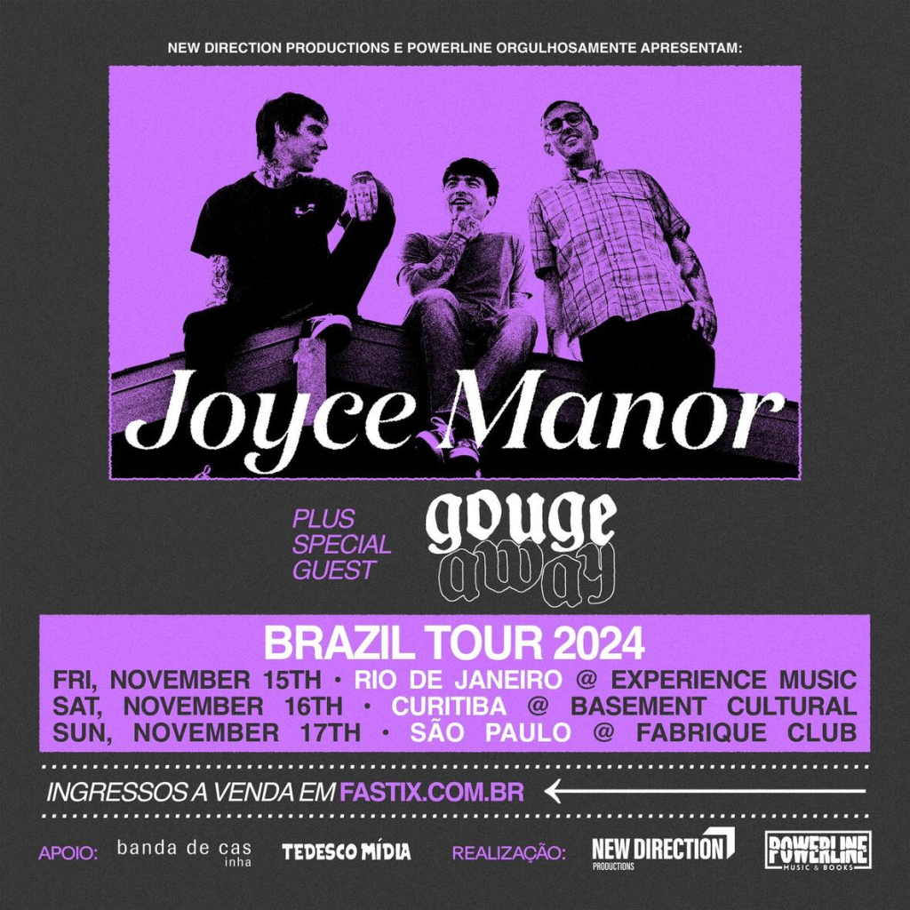 A New Direction Productions e a Powerline Music Books, em mais uma parceria, anunciam para novembro de 2024 a inédita e tão aguardada turnê brasileira da Joyce Manor, banda norte-americana pop punk/indie rock que celebra 10 anos do aclamado disco Never Hungover Again (2014), junto à conterrânea post-hardcore/noise rock Gouge Away, com os vocais expressivos da vocalista Christina Michelle.