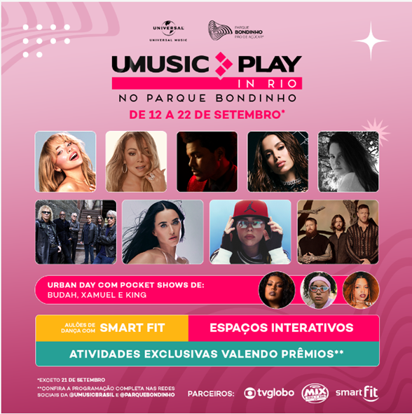 Além disso, os fãs poderão participar de ativações exclusivas, que incluem ações temáticas diárias, aulões de dança comandados pela Smartfit, e outras surpresas que serão reveladas ao longo do evento. A sonorização do ambiente fica por conta de uma playlist exclusiva UMusic Play.