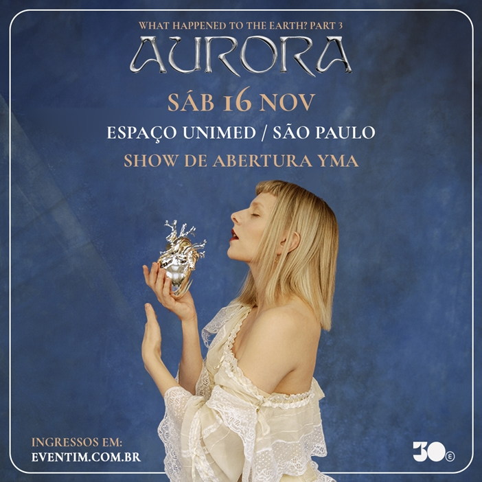 Falta pouco para que os brasileiros possam vivenciar o que a própria cantora AURORA considera como o projeto “mais pessoal e catártico” de sua carreira: o show What Happened To The Earth? Part 3, fruto de seu mais recente álbum, lançado em junho deste ano. A apresentação está marcada para o dia 16 de novembro, no Espaço Unimed, em São Paulo, em uma realização da 30e. Para completar o universo místico da noite, a cantora e compositora paulistana YMA, reconhecida por seus trabalhos únicos e instigantes com toques de suspense e psicodelia, foi convidada para abertura. Os ingressos estão à venda no site da Eventim (acesse aqui).