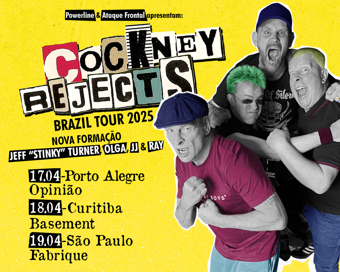 A icônica banda inglesa de street punk Cockney Rejects, com mais de 40 anos de intensas atividades, retorna ao Brasil em 2025 com sua nova formação, que conta com o lendário Olga, do The Toy Dolls, na guitarra. Serão três shows no mês de abril: Porto Alegre (17/04, no Opinião), Curitiba (18/04, no Basement Cultural) e São Paulo (19/04, no Fabrique Club).