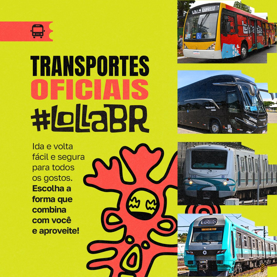 Lolla Express: Serviço de ônibus urbano comum, com três pontos de embarque na cidade. Nessa modalidade, o desembarque é feito em frente ao portão de entrada do festival, tornando a experiência de ida rápida e segura.
