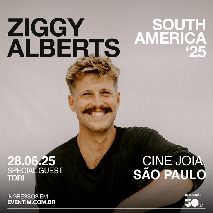 O cantor australiano Ziggy Alberts incluiu o Brasil na rota de sua turnê mundial New Love, homônima ao seu sétimo álbum de estúdio, lançado em fevereiro. Desde o início deste ano, a tour já realizou 12 apresentações nos Estados Unidos e segue para o Canadá antes de desembarcar na capital paulista no dia 28 de junho, no Cine Joia, em uma realização da 30e, maior companhia brasileira de entretenimento ao vivo. O show vai contar ainda com o ato de abertura de Tori, cantora e compositora sergipana radicada no Rio de Janeiro; e tem ingressos à venda pelo site da Eventim (acesse aqui).