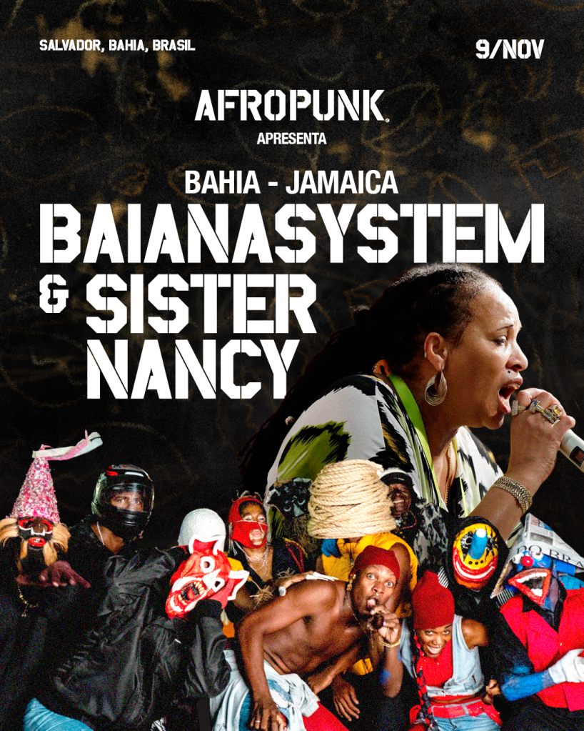 Desenhado pela equipe curatorial da IDW, agência responsável pela realização do AFROPUNK no Brasil, o show é mais do que uma performance: é um gesto político, uma comunhão estética e uma ponte entre gerações, geografias e tradições. A cultura de propor colaborações originais é um dos pilares do festival, que já promoveu encontros históricos como BaianaSystem com Patche Di Rima e Noite e Dia em 2023. Pela primeira vez na Bahia, Sister Nancy é uma figura seminal do reggae e primeira mulher a se destacar no dancehall jamaicano, um ícone de resistência em um gênero historicamente dominado por homens. Sua faixa “Bam Bam”, amplamente sampleada por artistas como Lauryn Hill, Jay-Z, Kanye West e Run-DMC, é considerada um hino transgeracional e foi eleita pela Pitchfork como a melhor música de dancehall de todos os tempos. Em 2024, sua trajetória foi retratada no documentário “Bam Bam: The Sister Nancy Story”, com participações de artistas como Janelle Monáe, que exaltam a artista como fonte direta de inspiração.