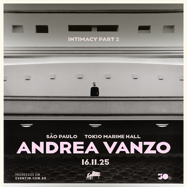 Andrea Vanzo, músico, compositor e pianista italiano, reconhecido mundialmente pela autenticidade e sensibilidade, contempla o Brasil na lista de sua turnê mundial Intimacy Part 2. O artista vem pela primeira vez ao país e vai se apresentar no dia 16 de novembro, no Tokio Marine Hall, em São Paulo, em uma realização da 30e, maior companhia brasileira de entretenimento ao vivo; os ingressos estarão disponíveis a partir do dia 27 de junho, às 10h, pelo site da Eventim (acesse aqui).