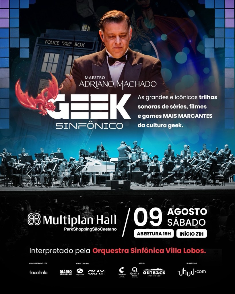 No dia 9 de agosto, o Multiplan Hall – ParkShopping São Caetano será palco de um dos espetáculos mais aguardados por fãs de todas as idades: GEEK SINFÔNICO, um concerto sinfônico grandioso que une a força da música orquestral às trilhas mais épicas da cultura pop mundial. Uma apresentação que combina o melhor da música clássica, da tecnologia visual e do universo geek.