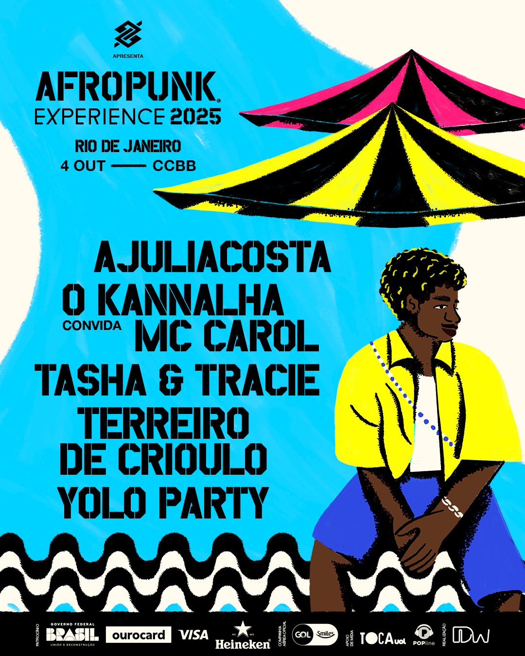 Com a proposta de amplificar o universo da experiência AFROPUNK para além de Salvador, o evento criou em 2024 uma versão especial e itinerante da andarilha – que já passou por Belém e São Paulo e este ano desembarca no Maranhão e, agora, no Rio de Janeiro. O AFROPUNK Experience Rio de Janeiro tem data marcada para o dia 04 de outubro, na Área Externa do CCBB RJ. Seguindo os rastros conceituais que guiam a plataforma AFROPUNK globalmente, o evento reafirma sua proposta de provocar encontros entre diferentes gêneros e movimentos da cultura negra, com um line-up que reúne AJULIACOSTA, para o lançamento do novo álbum, O Kannalha convidando MC Carol, a dupla Tasha & Tracie, a comemoração dos 13 anos do conhecido Terreiro de Crioulo e a Yolo Party com seu coletivo de DJs (Tamy, Will e Jimmy). A pré-venda de ingressos, exclusiva para clientes do Banco do Brasil, inicia no dia 28 de julho e as vendas gerais abrem no dia 04 de agosto.