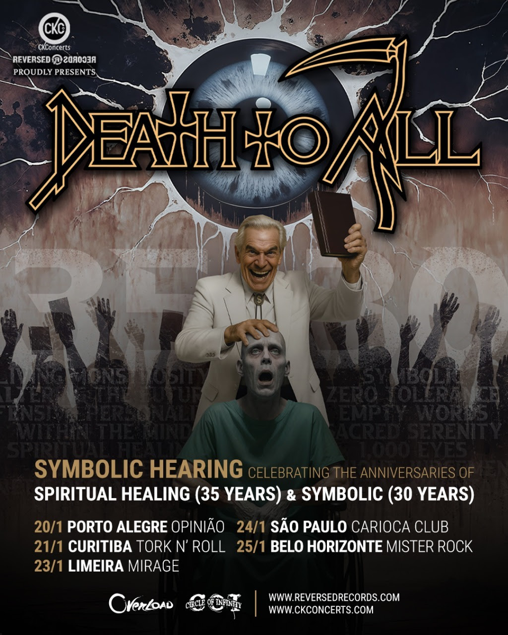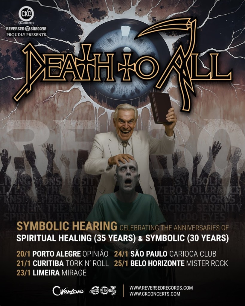 Death To All, projeto/turnê-tributo com ex-membros da banda norte-americana Death, anuncia turnê no Brasil em janeiro de 2026 que celebra os clássicos álbuns Spiritual Healing e Symbolic, que respectivamente completam 35 e 30 anos desde o lançamento oficial na década de 1990.