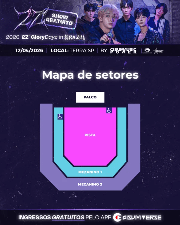 – O show “2026 2Z GloryDayz in Brazil” é apresentado pelo Cisumverse Technology Limited, por meio do aplicativo CisumVerse. A Highway Star integra o projeto exclusivamente na função de produção local, enquanto a idealização, o desenvolvimento do evento e a operacionalização da distribuição dos ingressos gratuitos são de responsabilidade da Cisumverse Technology Limited.