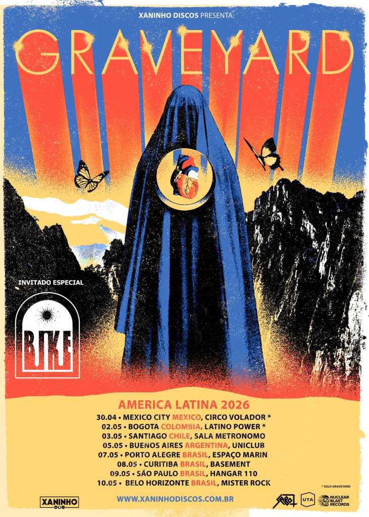 Com reputação sólida dentro do vintage hard rock, os suecos do Graveyard estão de volta à América Latina para divulgar o álbum 6 em oito apresentações entre abril e maio. Em seis das oito datas, como os quatro shows Brasil mais Chile e Argentina, a banda suporte será a brasileira de rock psicodélico Bike.