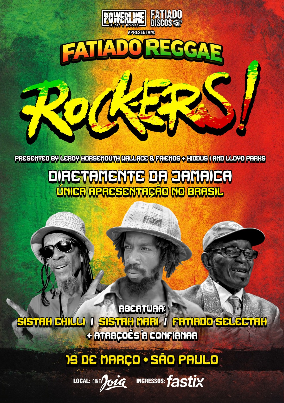 São Paulo/SP recebe diretamente da Jamaica, no dia 15 de março, o espetáculo Rockers!, que celebra o legado do filme jamaicano Rockers (1978) e de sua icônica trilha sonora. A apresentação acontece no Cine Joia, com realização da Powerline Music & Books e da Fatiado Discos. Esta será a única data no Brasil.