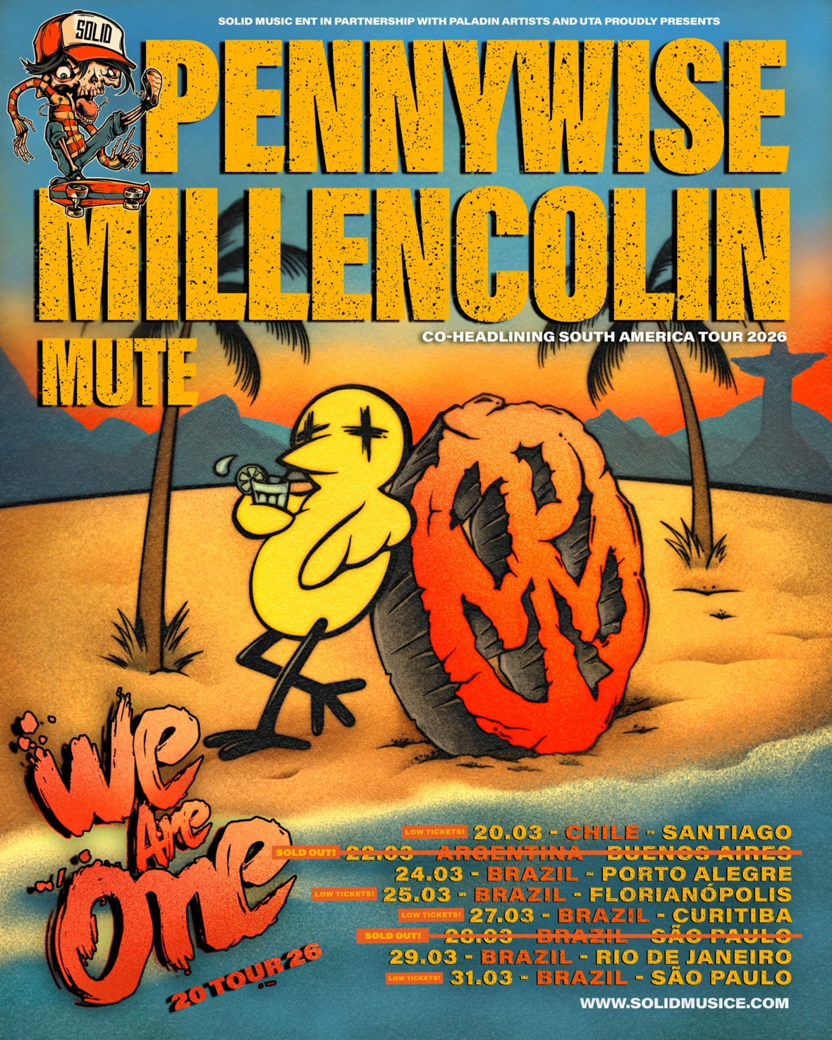 A maior edição da história do já tradicional We Are One Tour acontece no Brasil entre os dias 24 e 31 de março de 2026, em seis datas, reunindo três atrações internacionais e uma banda brasileira de abertura. A nova edição traz como headliners duas referências do punk/hardcore melódico, Pennywise (EUA) e Millencolin (Suécia), além da canadense Mute e da paulistana The Mönic, que abre todos os shows. A realização é da Solid Music Entertainment.