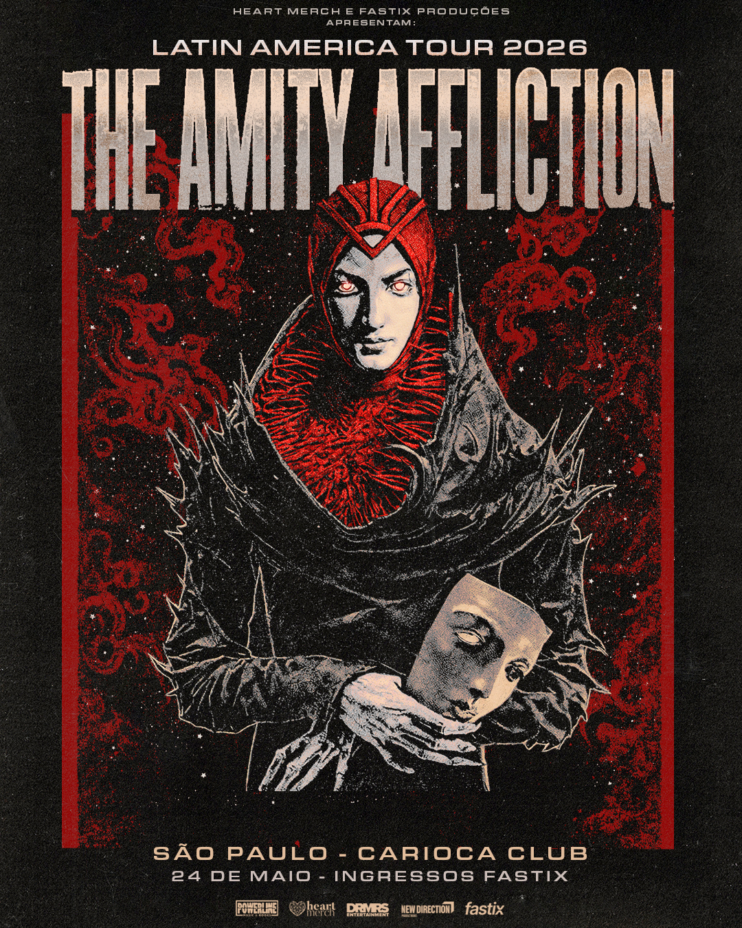 A banda australiana de metalcore/post-hardcore The Amity Affliction se apresenta em São Paulo/SP no dia 24 de maio, no Carioca Club, em data única no Brasil pela Latin America Tour 2026. A produção é da Heart Merch em parceria com a FasTix Produções, New Direction Productions e Powerline Music & Books.